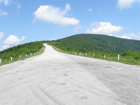 Mount Equinox in southwest Vermont is one of the most difficult climbs on earth. Unfortunately it is open to bikes only during the annual race on its slopes. Steep from the start, multiple ramps of 9-12% greet you as you begin up the hill, soon to ride within woods. Within its 2nd mile you encounter a short flat and then a small descent. Soon however the evil side of Equinox returns as you run into an extended double digit ramp that contains the maximum grade on the hill. A few tight switchbacks carry you higher up the mountain. After what seems like an eternity, the road opens up just over 4 miles in as the grade eases as you ride along a hogback with views. From here the grade slowly ramps back up to double digit as the trees close in again along with switchbacks. A final straight section of torture brings you to climb's end at a small parking area.