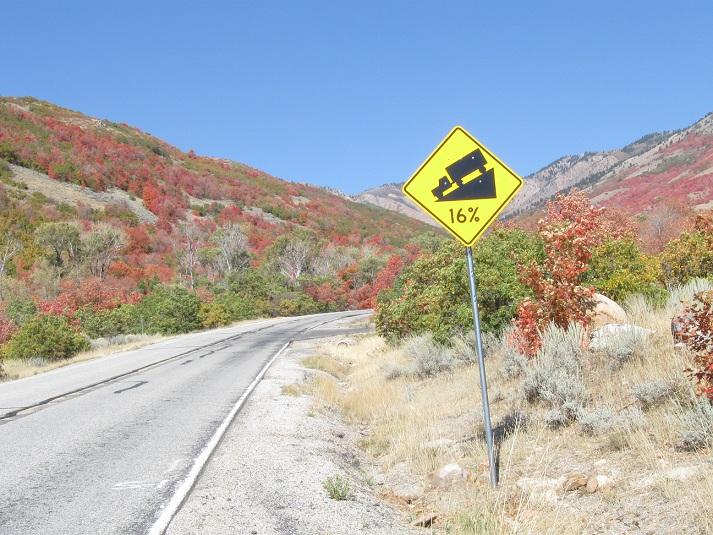 A monster climb, Powder Mountain will slam you along long stretches of double digit grade over its 2nd half. In fact, it may contain the most difficult finish of any U.S hill. A tale of two climbs in a sense, its start is along moderate grade through a mountain neighborhood. Soon however, as the houses recede, the grade rears up and bites you. The road enters a narrow canyon and the slope goes ballistic. Hitting double digit for almost all of the remainder of the ascent, the last 3 miles of this one average over 13% grade. Near the top the slope eases just a bit and the climb ends as the pavement ends at a ski area. Powder Mountain may be the fastest descent in the U.S. as well.